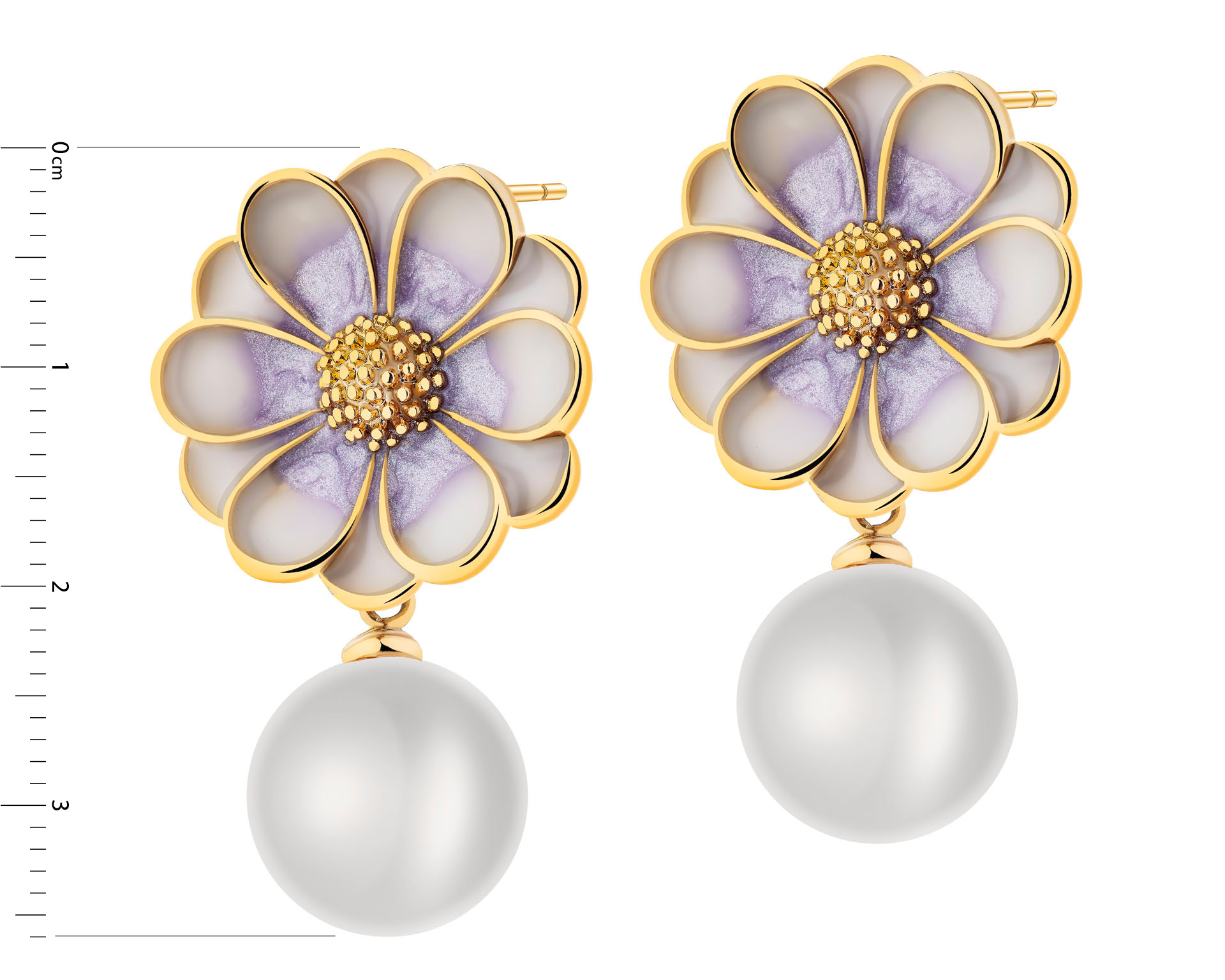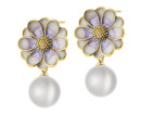Pozlacené náušnice z mosazi s detaily z křišťálové pryskyřice a perlami - květy