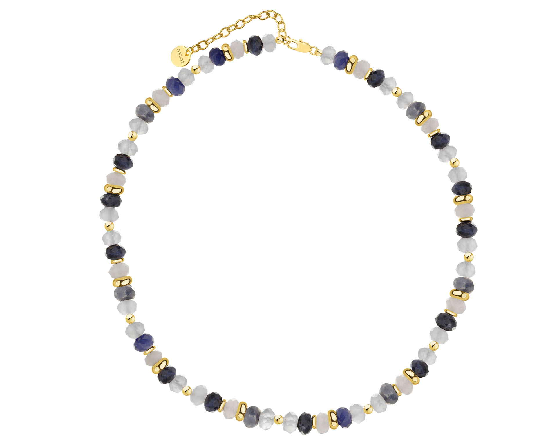 Pozlacený náhrdelní z mosazi se sodolity a křemeny