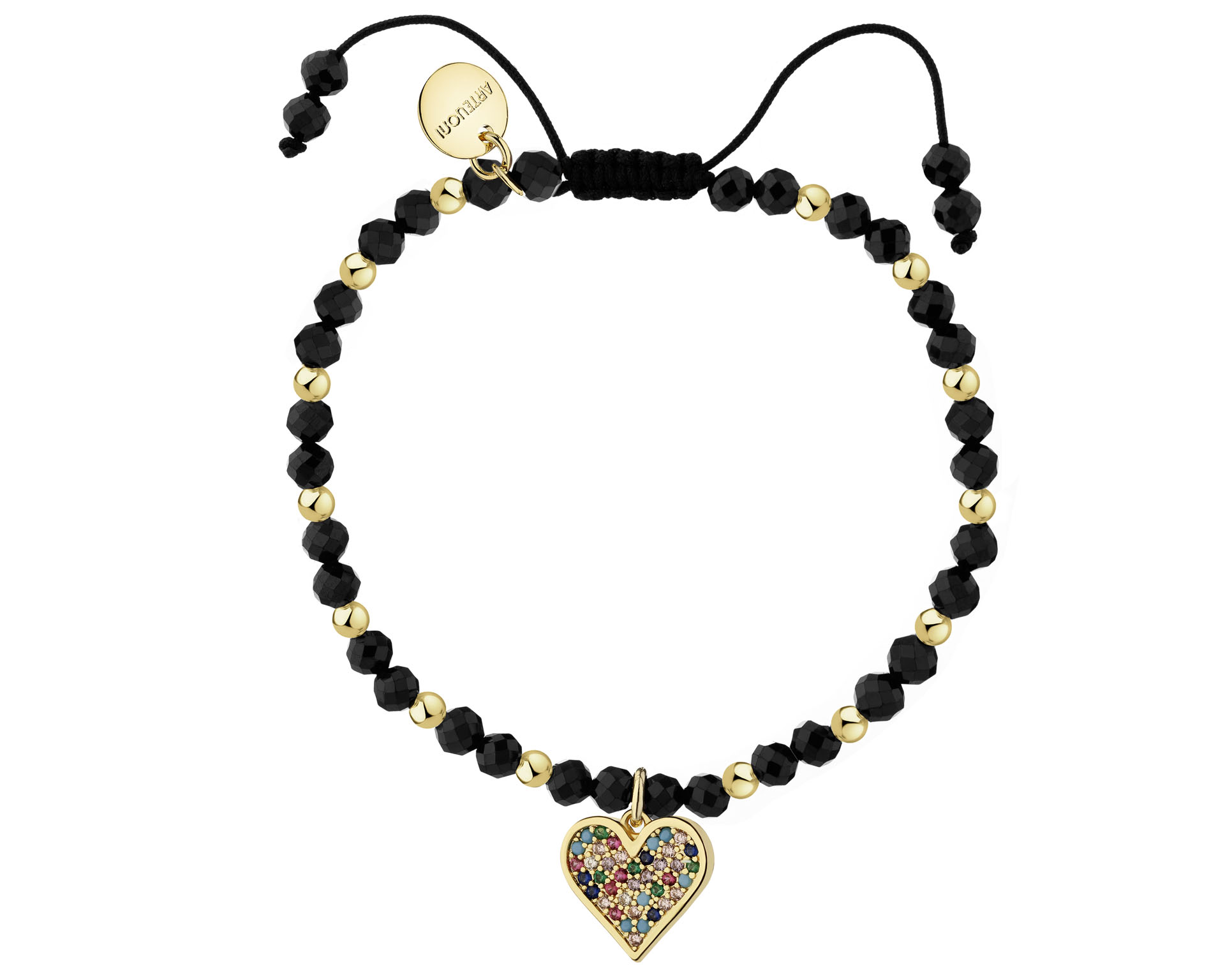 Pozlacený náramek z mosazi se zirkony a spinely – srdce