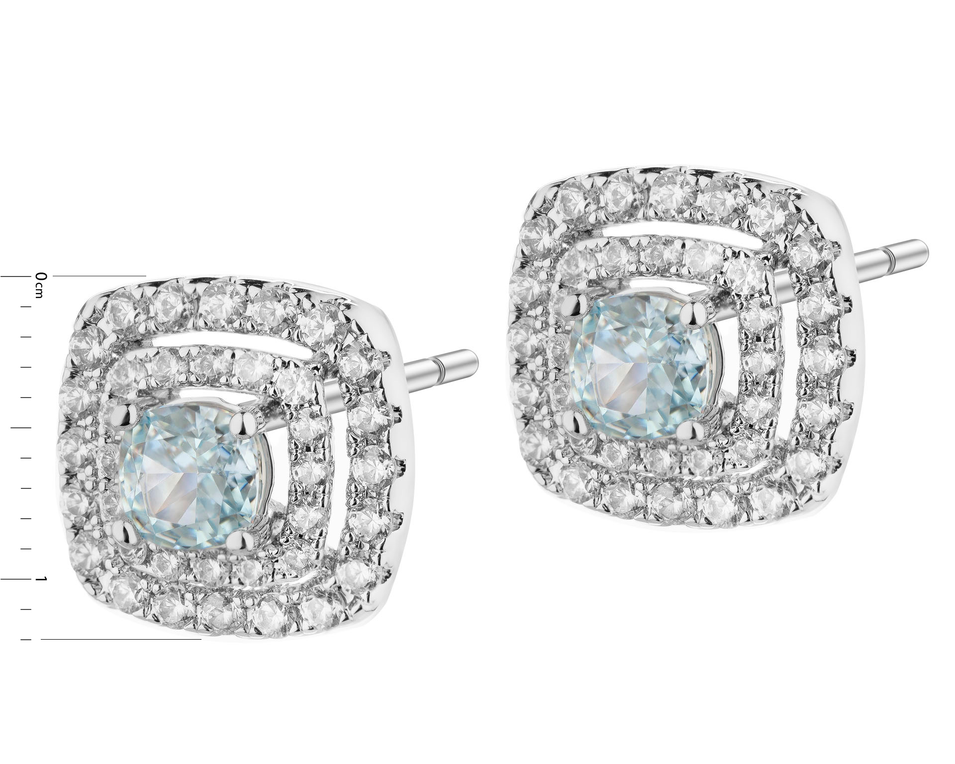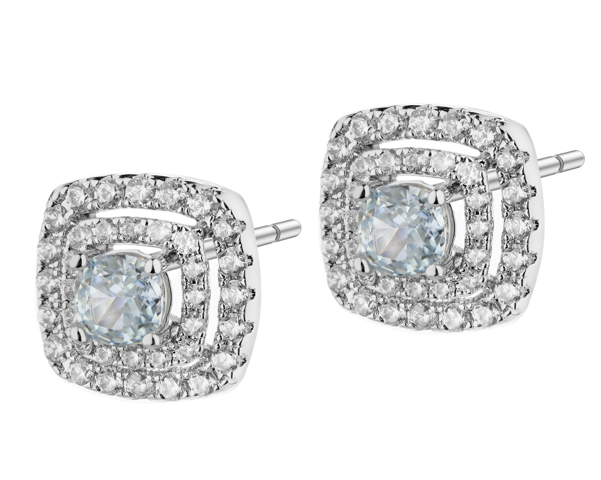 Náušnice z rhodiované mosazi se zirkony – čtverec