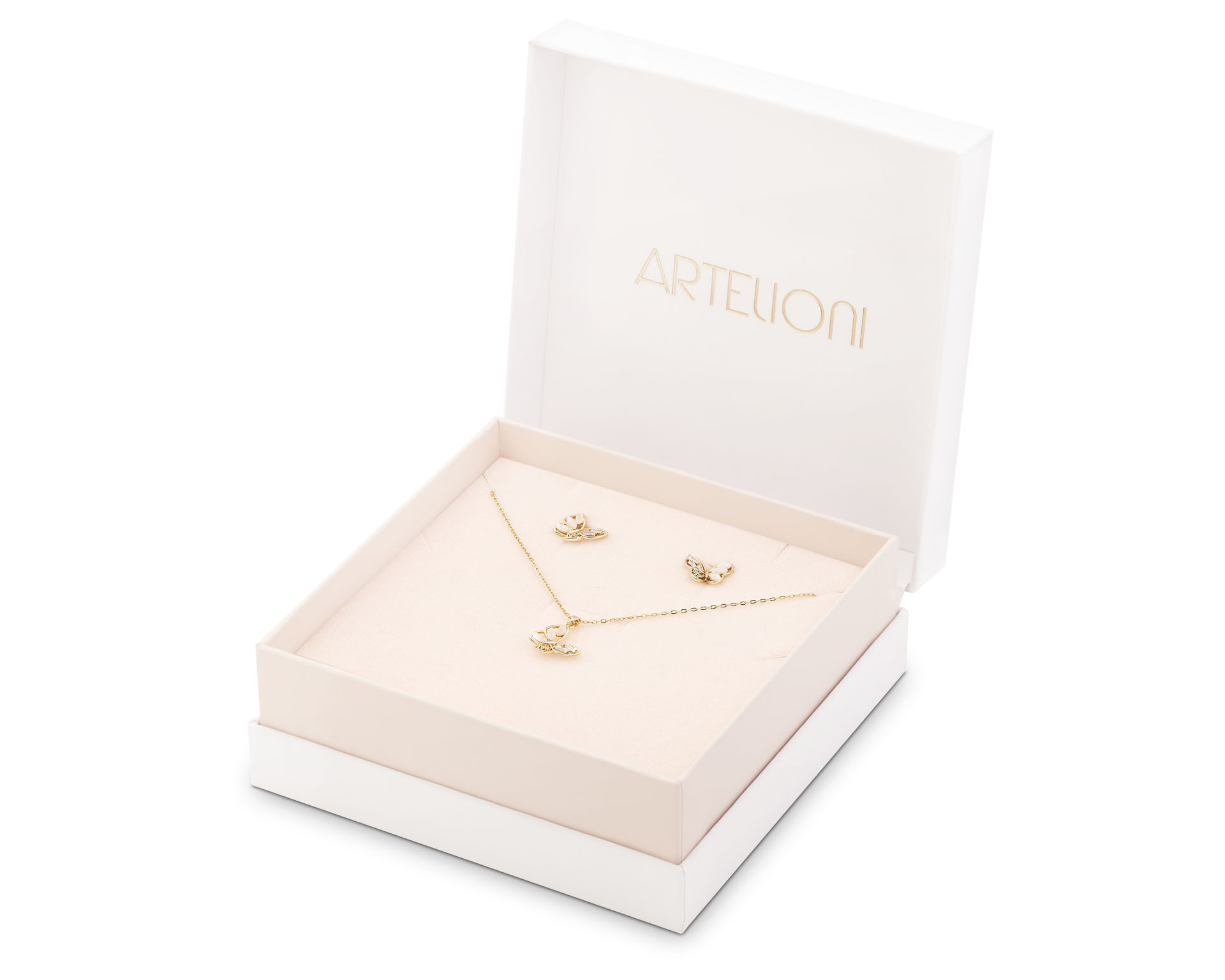 POZLACENÉ NÁUŠNICE A NÁHRDELNÍK Z MOSAZI SE ZIRKONY A KOČIČÍM OKEM - MOTÝLI