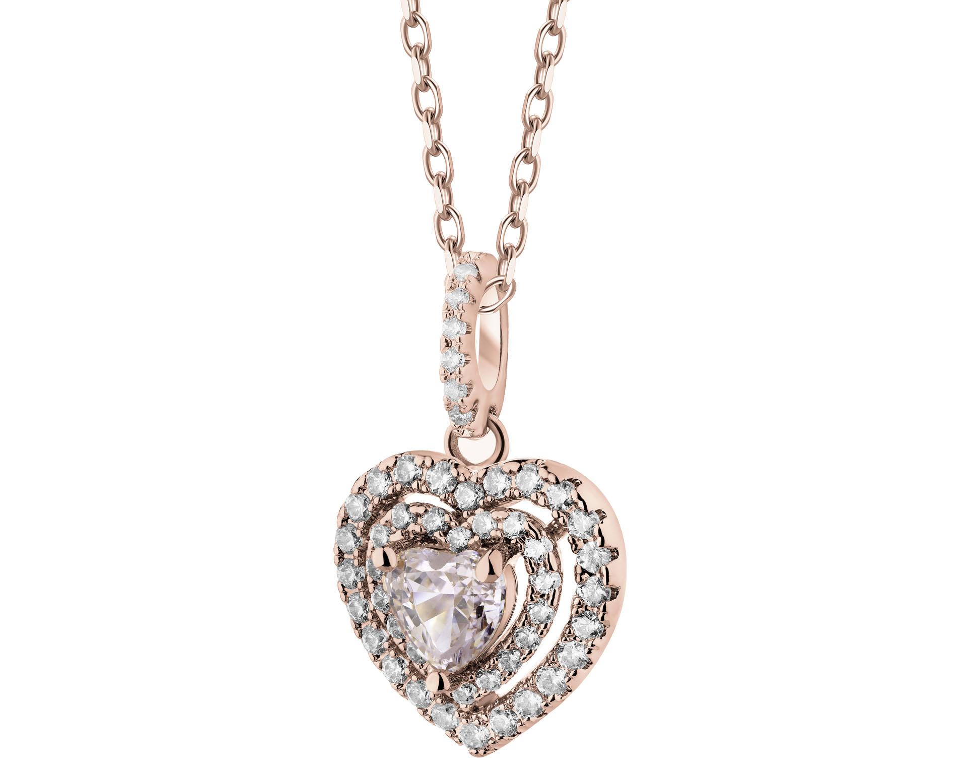 Pozlacený náhrdelník z mosazi se zirkony - srdce