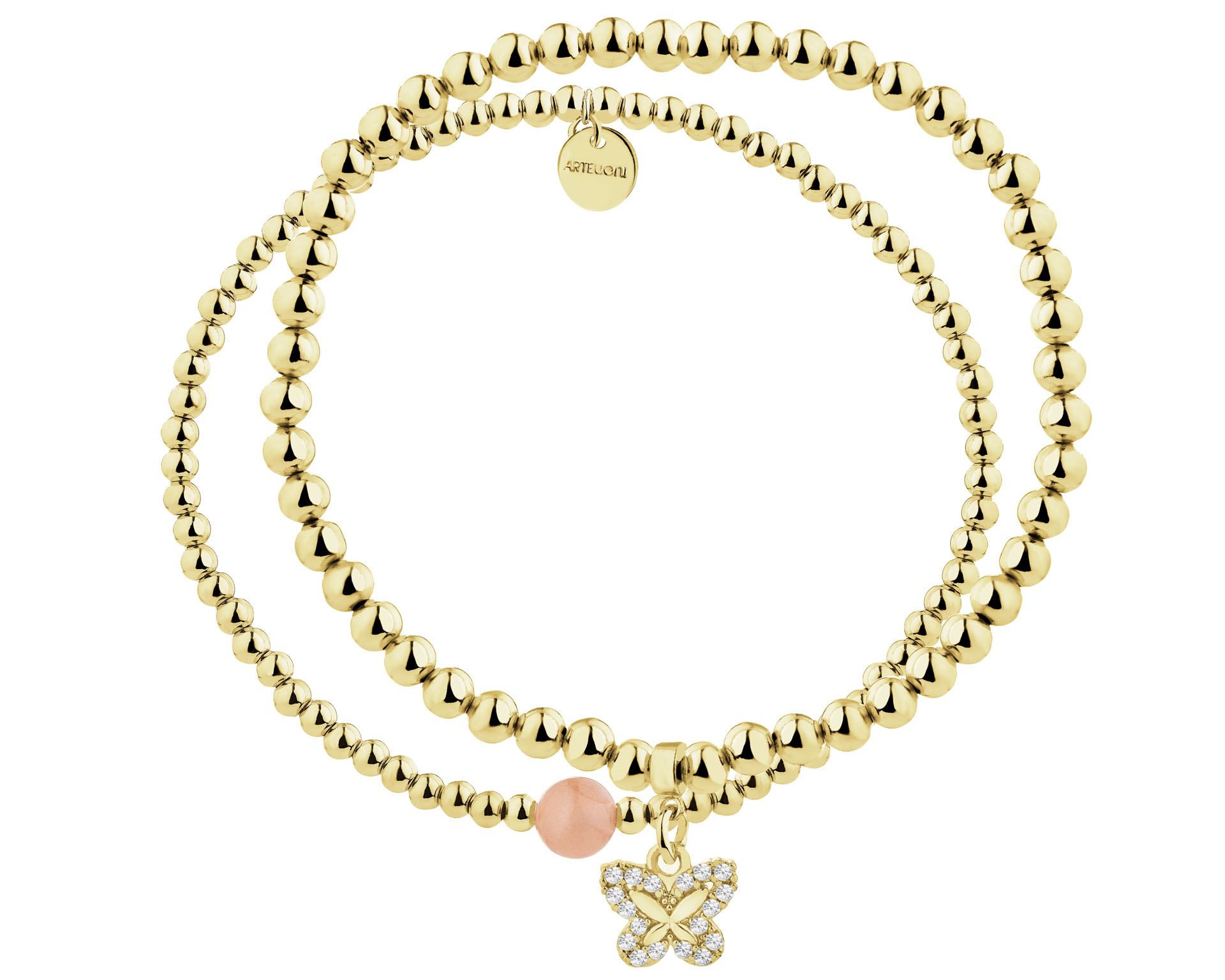 Pozlacený náramek z mosazi se zirkony a slunečními kameny - motýl