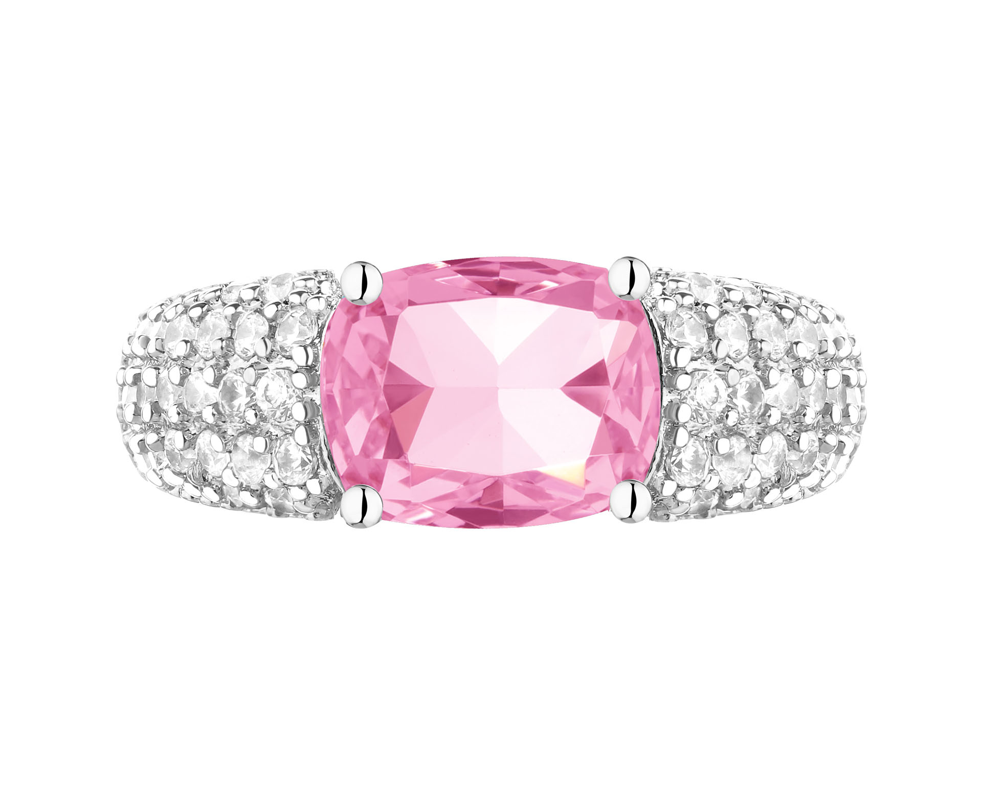 Rhodiovaný prsten z mosazi se zirkony a skleněným detailem