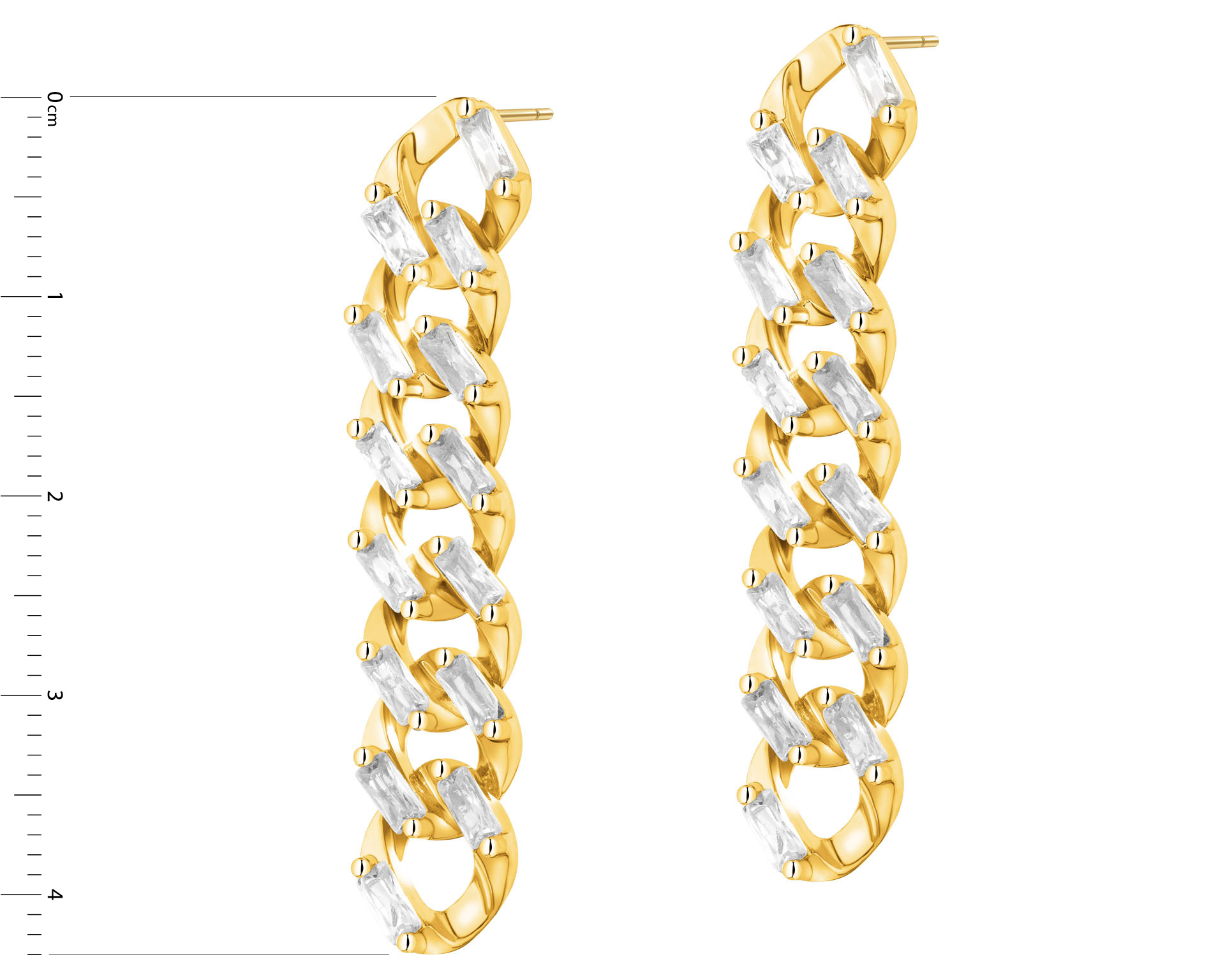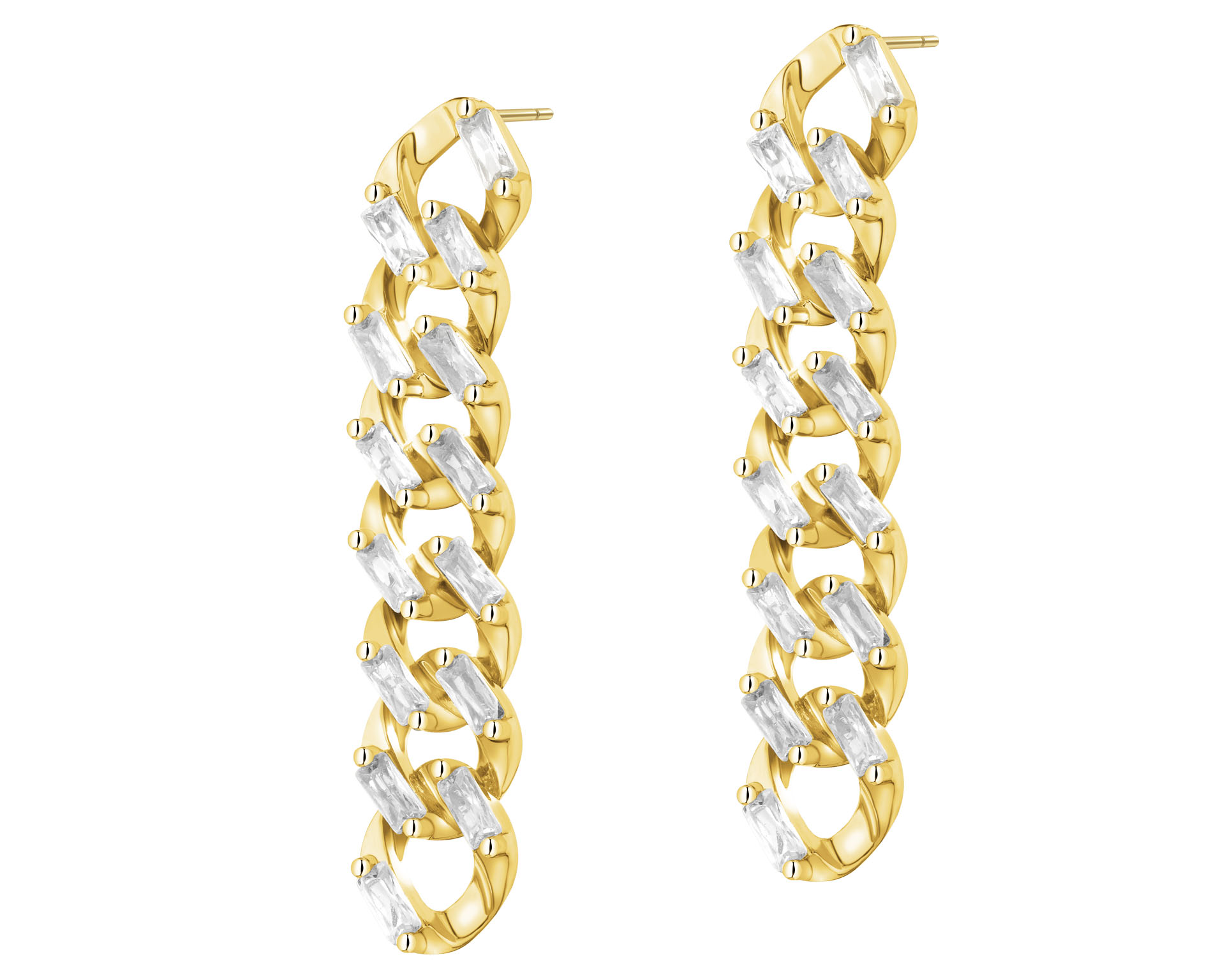 GOLD-PLATED BRASS, GOLD-PLATED SILVER DANGLING EARRING WITH CUBIC ZIRCONIA