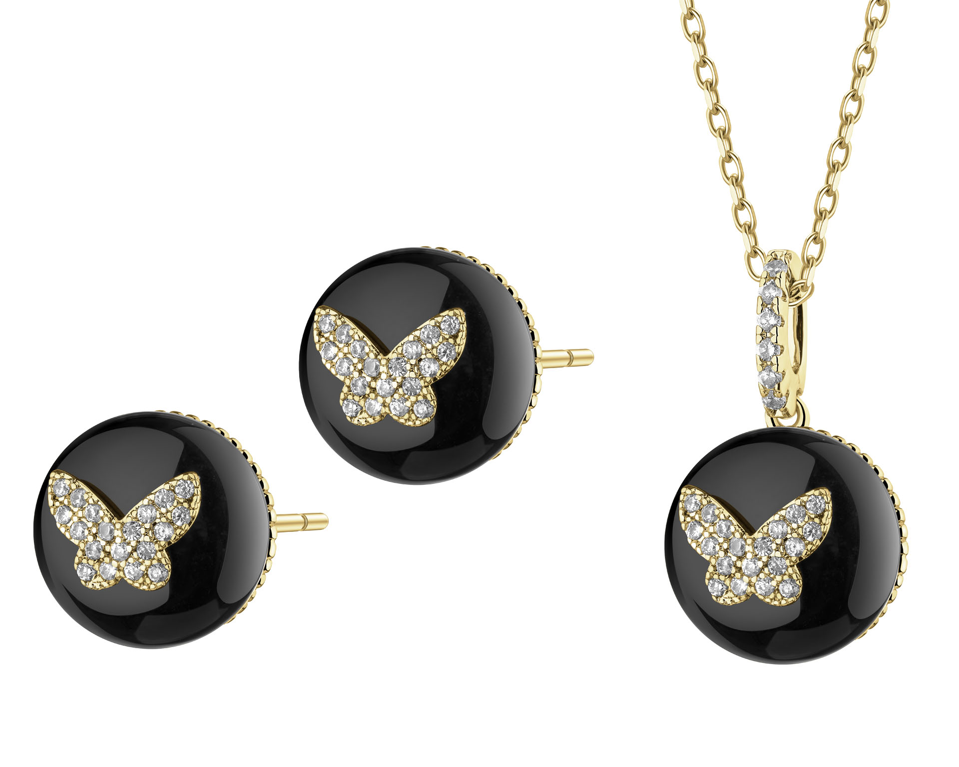 Gold-Plated Brass, Gold-Plated Silver Set with Cubic Zirconia