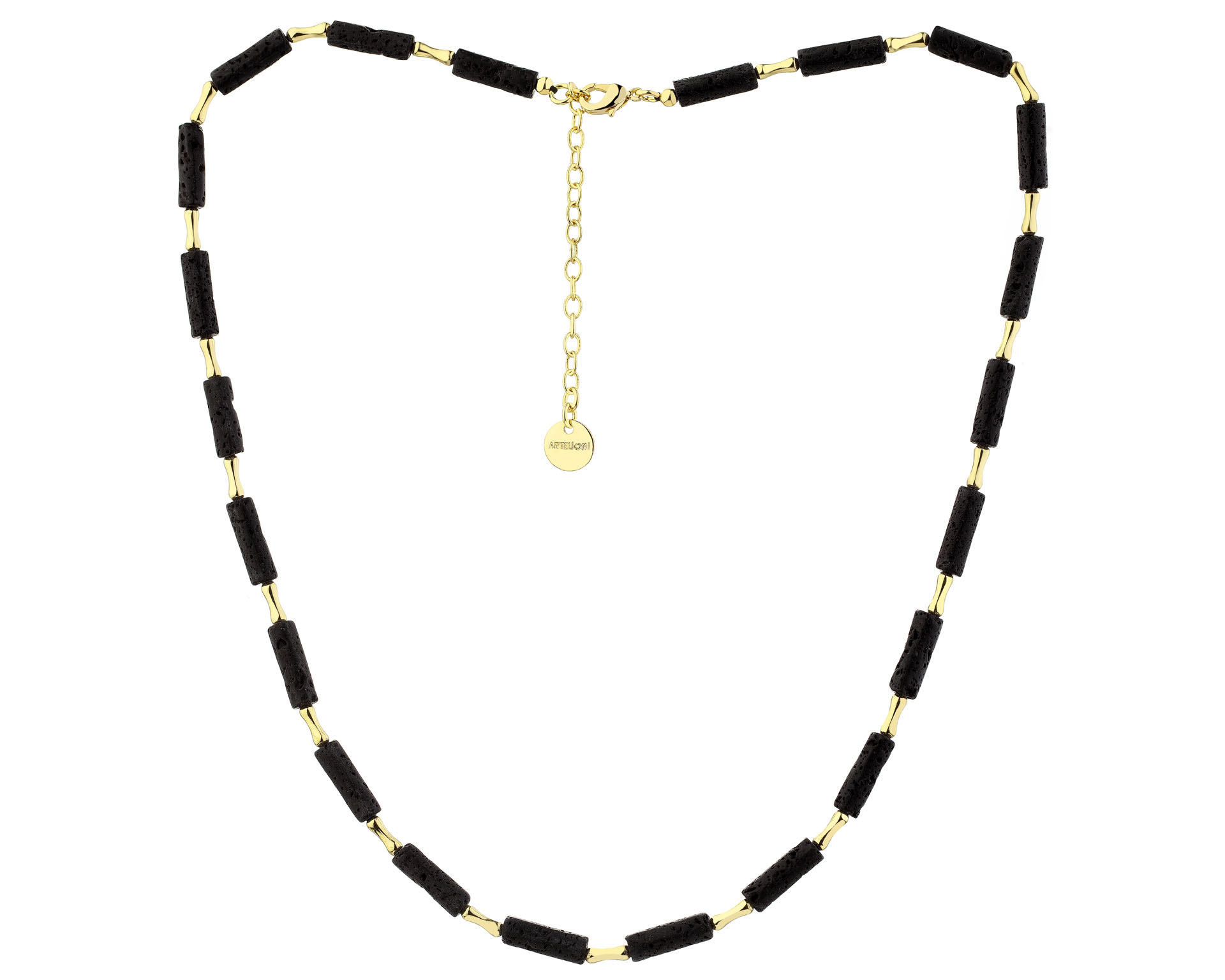 Gold-Plated Brass Necklace with Volcanic Rock