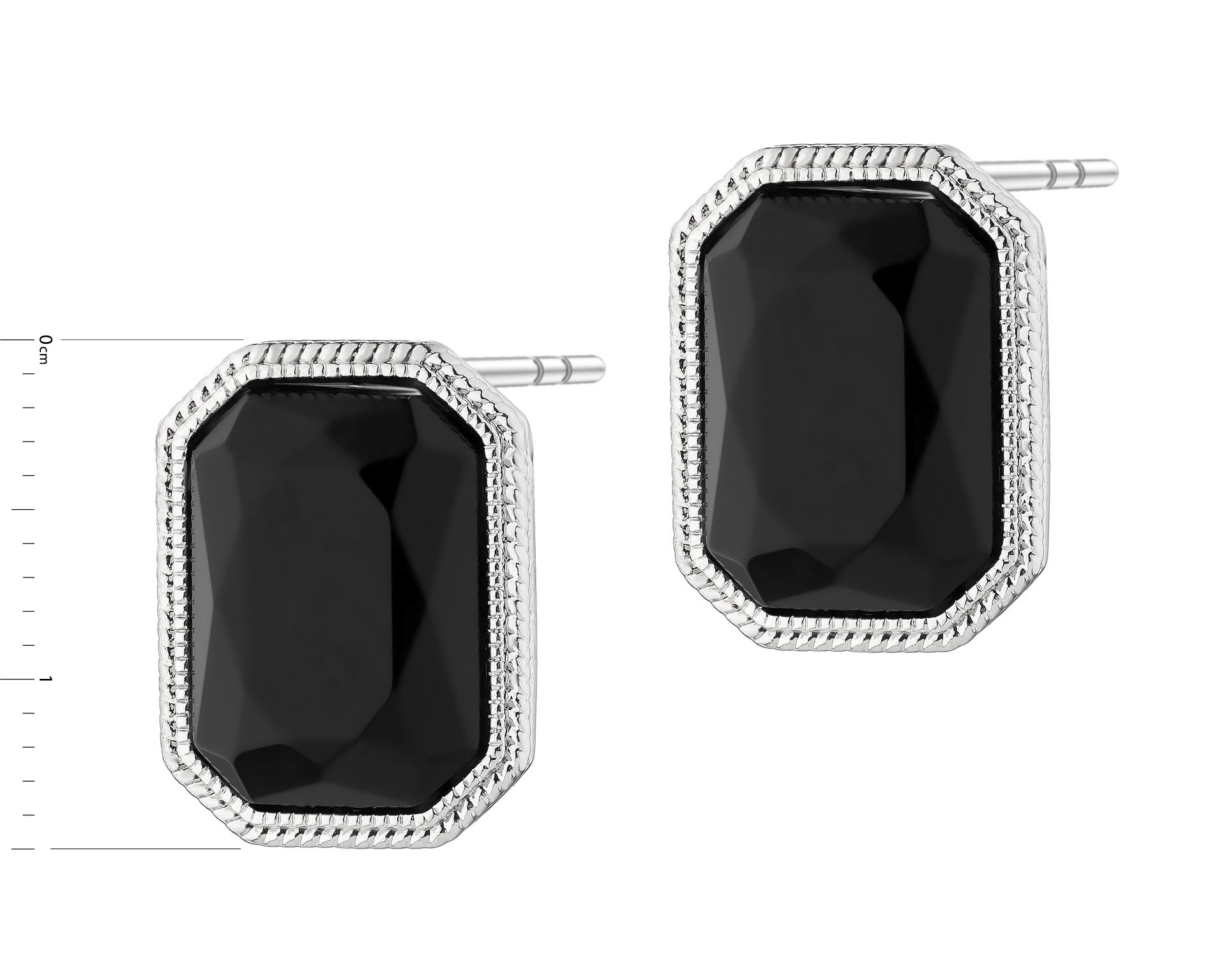 Rhodium-Plated Brass, Rhodium-Plated Silver Earrings with Agate